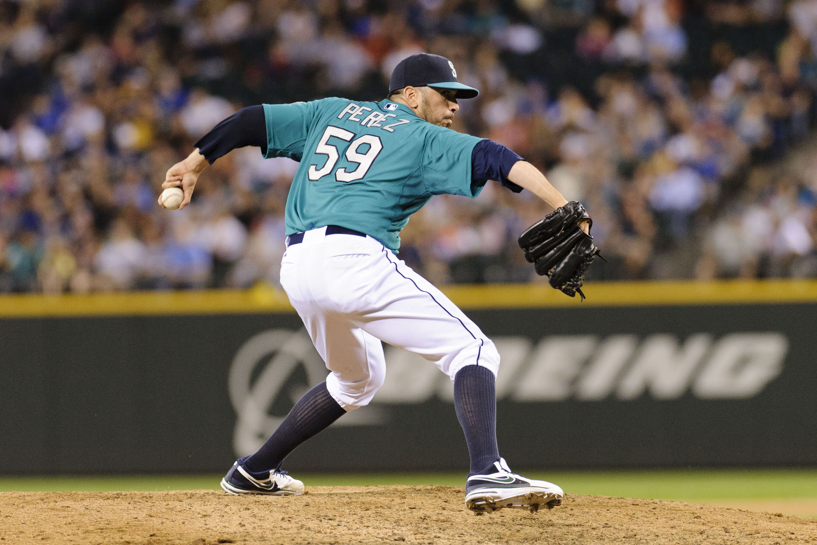 Pérez, de 32 años, tuvo una foja de 3-3 con dos salvamentos y una efectividad de 3.74 en 61 apariciones con los Marineros de Seattle, la temporada pasada. Nunca antes había participado en tantos juegos.