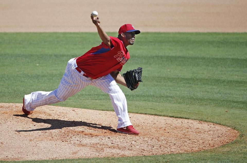 El dominicano Roberto Hernández lanzó a la perfección hasta la sexta entrada, Ben Revere y Domonic Brown batearon cada uno dos imparables, y los Filis de Filadelfia derrotaron el jueves 6-2 a un equipo de los Yanquis de Nueva York.