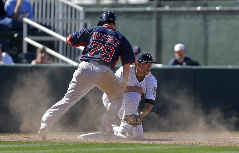 El tercera base de los Mellizos Trevor Plouffe no pudo atrapar la roleta de Xander Bogaerts en una tercera entrada de 37 lanzamientos de Hughes. Un out después, Bogaerts anotó cuando el primera base Joe Mauer soltó la pelota.