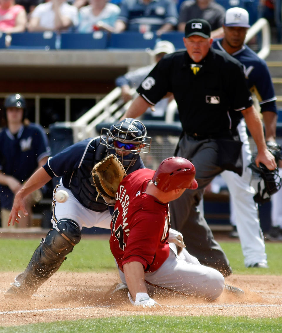 Goldschmidt ayudó a que los Diamondbacks tomaran una ventaja de 6-2, pero los Cerveceros remontaron al final. Sean Halton bateó de 2-2 y empató el duelo con un doblete en la novena entrada.