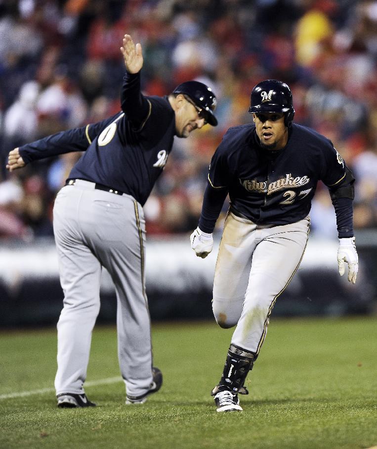 Los Cerveceros rompieron un empate de 4-4 en el octavo inning cuando anotaron tres carreras gracias a un hit ante el dominicano Antonio Bastardo (0-1). Reynolds anotó la carrera de la ventaja por un error del inicialista Ryan Howard.