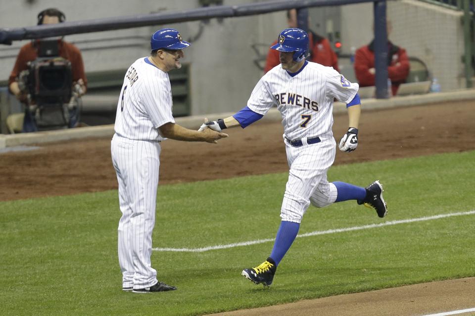 Carlos Gómez tuvo un sencillo de dos carreras por Milwaukee en el quinto.