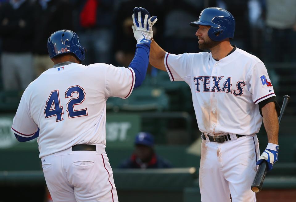 Kouzmanoff también aportó un par de dobletes, el segundo de ellos remolcando dos carreras que dieron a los Rangers una ventaja de 4-0 en la octava entrada. Fielder anotó al arrancar desde la primera base después de que recibió una base por bolas intencional tras ser ponchado dos veces.