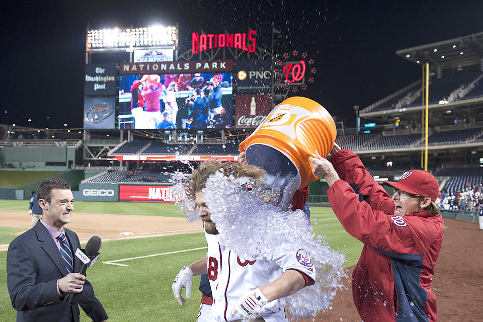 El venezolano José Lobatón abrió el episodio con su primer jonrón de la temporada. Un out después, Denard Span pegó un sencillo y Anthony Rendón recibió un boleto.