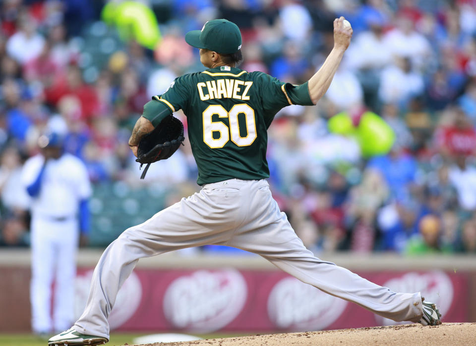 Jesse Chavez toleró apenas un hit y ninguna carrera en siete innings, para que los Atléticos de Oakland completaran una barrida en tres encuentros, al apabullar el miércoles 12-1 a los alicaídos Rangers de Texas.