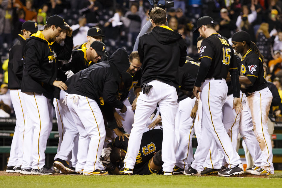 Santos (0-2) entró al juego con ventaja de 5-3 y permitió hit a su primer enemigo, Neil Walker. Ponchó a Andrew McCutchen y Álvarez siguió con su séptimo jonrón de la campaña. El emergenteIke Davis fue dominado en elevado y Marte conectó el primer cuadrangular para ganar un partido en su carrera de Grandes Ligas.