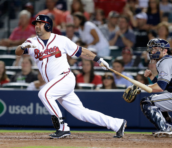 B.J. Upton conectó jonrón de dos carreras, apenas por encima de la barda de jardín derecho, y los Bravos vinieron de atrás para ganar el encuentro en el siguiente inning. Gerald Laird también contribuyó con un crucial imparable, un doble productor que se desvió en el guante de un jugador de cuadro.