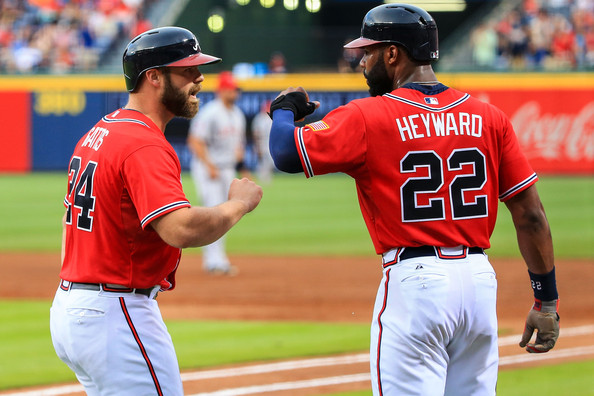 El jardinero derecho de los Bravos, Jason Heyward, dejó el juego con un golpe en la mano derecha, luego de que un lanzamiento de Wilson le impactara en el primer inning. Los Bravos informaron que los rayos-X fueron negativos y será evaluado día a día.