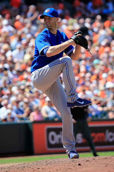 J.A. Happ lanzó con efectividad hasta el séptimo inning, el venezolano Dioner Navarro conectó tres hits y remolcó dos carreras y los Azulejos de Toronto vencieron el domingo 5-2 a los Orioles de Baltimore para dividir triunfos en la serie de cuatro duelos.
