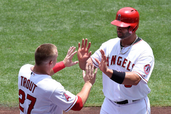 El dominicano Pujols bateó tres imparables y Josh Hamilton remolcó una carrera para ayudar a los Angelinos a ganar su sexto encuentro consecutivo y colocarse 11 juegos por encima de los .500 de porcentaje (44-33), su mejor posición hasta ahora en la temporada. Trout pegó dos dobletes, incluido uno de dos carreras por la línea del jardín izquierdo en la séptima entrada.
