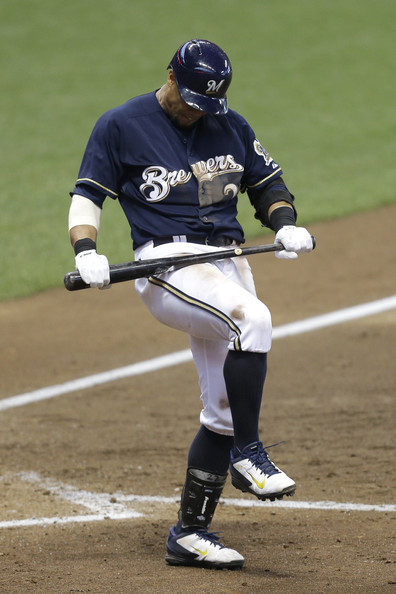 El dominicano Carlos Gómez, astro de los Cerveceros, se ponchó tirándole en el quinto inning e intentó tres veces romper su bate sobre su pierna. Azotó su casco contra el piso y rompió sus guantes de bateo.