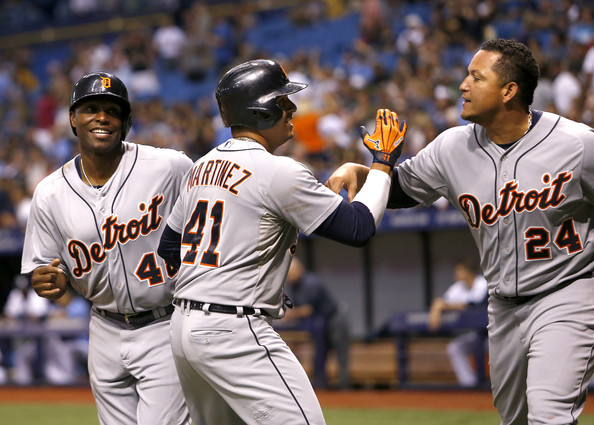 Por los Tigres, los venezolanos Miguel Cabrera de 2-1 con dos anotadas, Martínez de 3-2 con una anotada y cinco producidas.