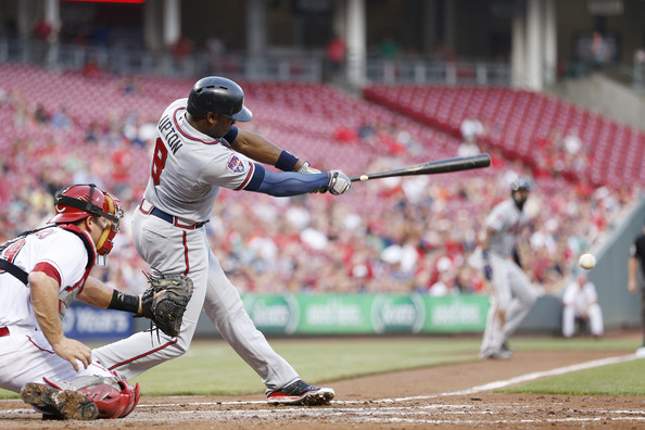 Justin Upton amplió a 12 juegos su seguidilla pegando de hit y el colombiano Julio Teherán cumplió una labor eficiente para que los Bravos de Atlanta arrollaran el jueves 8-0 a los Rojos de Cincinnati.