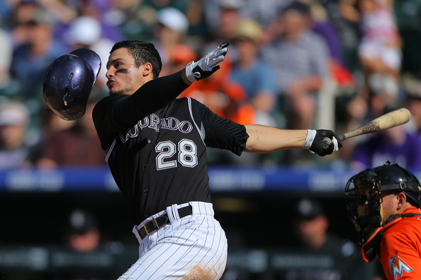 Adeiny Hechavarría igualó una marca de los Marlins con dos triples, en cada uno beneficiado cuando el jardinero derecho Charlie Blackmon tuvo dificultades para recuperar la pelota debido al brillo del sol.