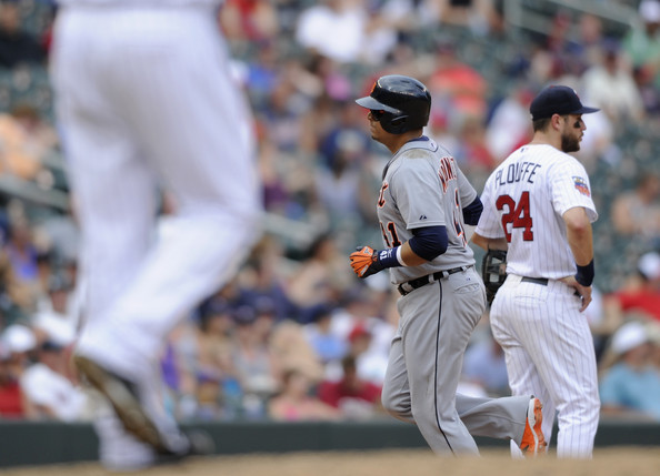 El venezolano Víctor Martínez sacudió un vuelacerca y totalizó cuatro remolcadas, para que los Tigres de Detroit apabullaran el domingo 13-4 a los Mellizos de Minnesota.