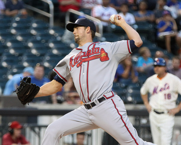 Mike Minor, de los Bravos, lanza frente a los Mets.