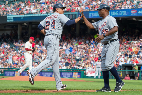 El venezolano Miguel Cabrera se mostró plenamente recuperado y sonó dos cuadrangulares para que los Tigres de Detroit apabullaran el lunes 12-1 a los Indios de Cleveland.