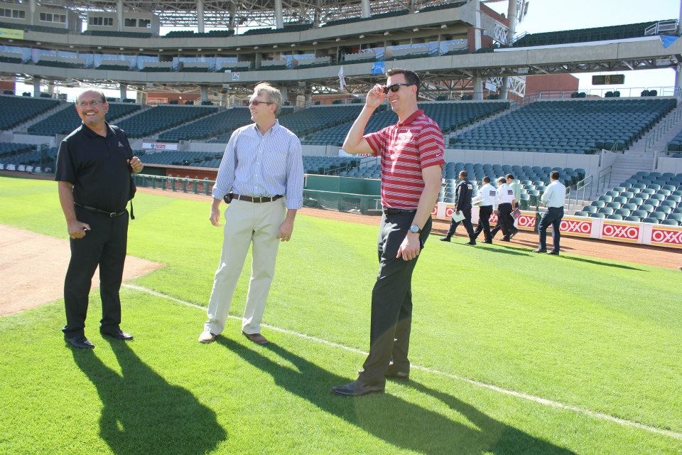 Previamente el gerente de los Naranjeros de Hermosillo, Juan Aguirre, así como Graham Rossini y Richard Sáenz, vicepresidente de eventos especiales de los D-Backs, respectivamente, y el encargado del estadio Chase Field, casa del equipo de Arizona, Grant Trenbeath, supervisaron de cerca el campo del Estadio Sonora.