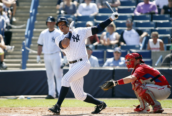 Alex Rodríguez regresó a los Yanquis de Nueva York luego de una ausencia de más de 17 meses, y conectó un sencillo al prado izquierdo en su primer turno al bate durante la derrota por 3-1 sufrida el miércoles ante los Filis de Filadelfia.