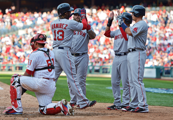 Hanley Ramírez debutó a lo grande con los Medias Rojas al batear el lunes un par de jonrones y Boston despachó 8-0 a los Filis de Filadelfia, en un juego interligas en la primera jornada de la temporada.