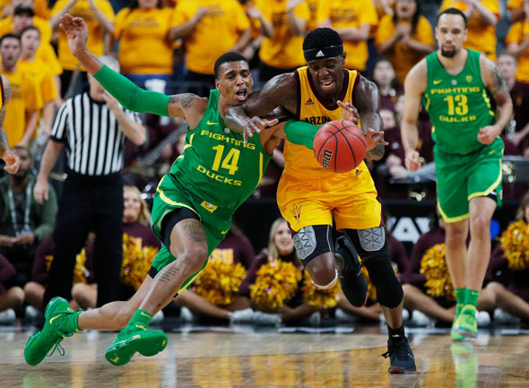 Oregon finalmente se enderezó y creó algunas pérdidas de balón que llevaron a canastas fáciles, tirando dentro de una y manteniendo a los Sun Devils al alcance.