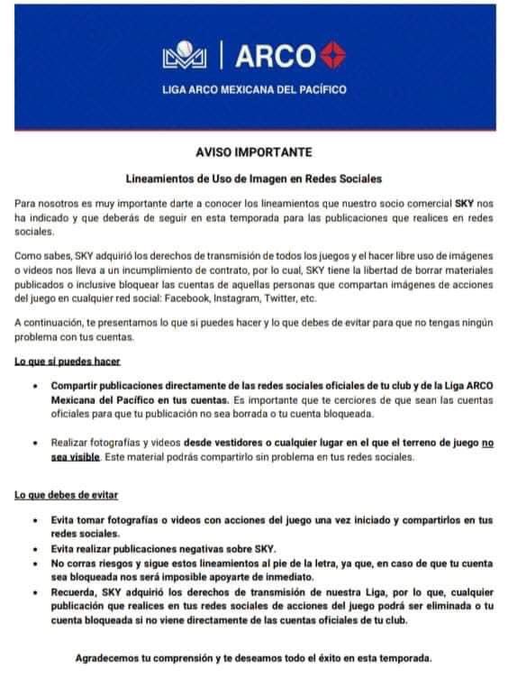 Pero en lo que la LMP se ve hasta ridícula es cuando en su mismo circular dice que ‘no se debe hablar mal de Sky Sports’ Claro que me revolcaba de la risa al releerlo. Vivimos en un país donde es una batalla campal en redes sociales contra y a favor del Gobierno en cualquier nivel… y resulta que contra Sky Sports no se puede decir nada. Hasta se me abren las boquillas de la risa.