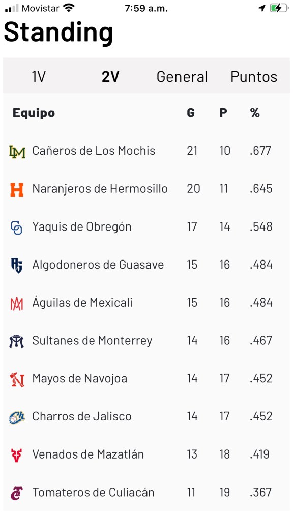 Wilmer Ríos lanzó cinco entradas y dos tercios de apenas cuatro hits sin admitir anotaciones, y fue respaldado por una ofensiva comandada por Alejandro Mejía de 2-2 con cuatro carreras remolcadas y Nick torres de 5-3 con un triple, tres anotadas y dos producidas en la amplia victoria de los Naranjeros por 11-0 sobre los Águilas de Mexicali cuando restan dos jornadas por disputarse en la Liga Mexicana del Pacífico.