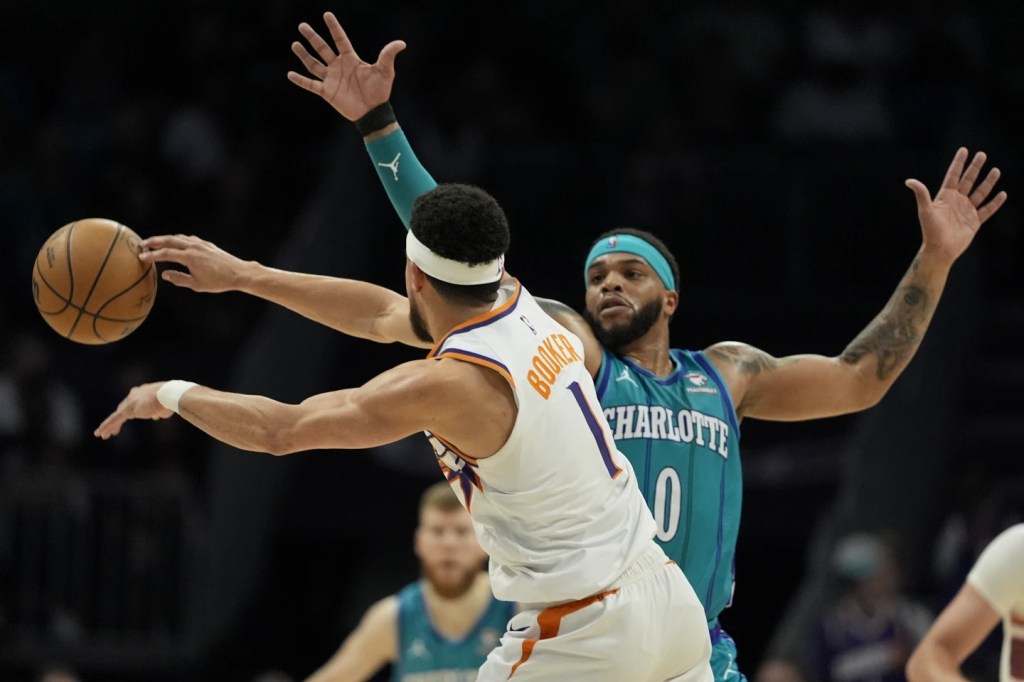 Devin Booker lideró un balanceado ataque de Phoenix con 21 puntos y 11 asistencias mientras los Soles vencieron 107-96 a los Hornets de Charlotte el viernes por la noche para su cuarta victoria en seis juegos.