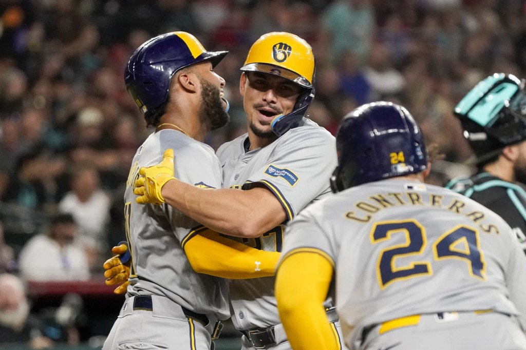 El dominicano Willy Adames conectó un grand slam como parte de una noche de dos jonrones, Garrett Mitchell agregó un cuadrangular de dos carreras y los Cerveceros de Milwaukee vencieron el sábado 15-8 a los Diamondbacks de Arizona.