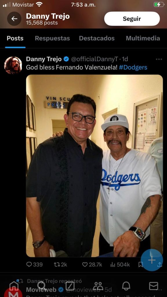 “¡Dios bendiga a Fernando Valenzuela”, publicó en X Danny Trejo, actor y fanático de los Dodgers.
