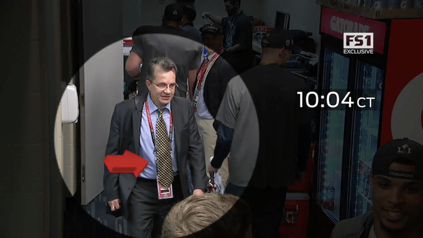 Así es, el mexicano Mauricio Ortega, de La Prensa y que iba a los eventos en calidad de aficionado disfrazado de periodista fue el culpable. Al final le pide disculpas a Brady mismas que el ex quarterback acepta. Muchas gracias