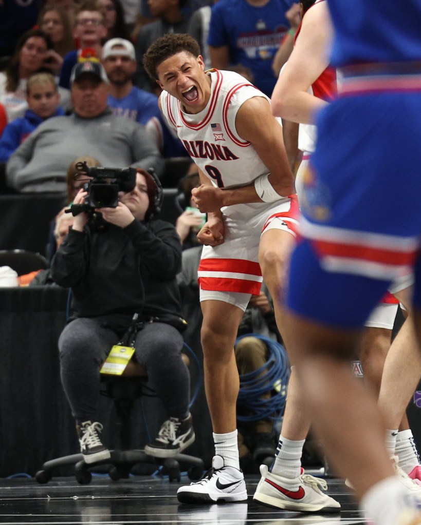 Arizona jugó con una ventaja hasta que Zeke Mayo conectó triples consecutivos para que Kansas empatara el marcador a 50 con 15:43 por jugar. Harris encestó un triple para darle a los Jayhawks su segunda ventaja en 56-54. Rylan Griffen encestó un tiro con 8:44 por jugar para poner a Kansas arriba por última vez en 63-61. Trey Townsend siguió con una clavada y una jugada de tres puntos y Arizona mantuvo una ventaja en los últimos 7:48 minutos.