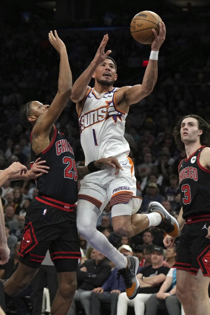 Devin Booker encestó 41 puntos, incluidos 20 en el cuarto período, y los Suns de Phoenix derrotaron 127-121 a los Bulls de Chicago el miércoles por la noche.