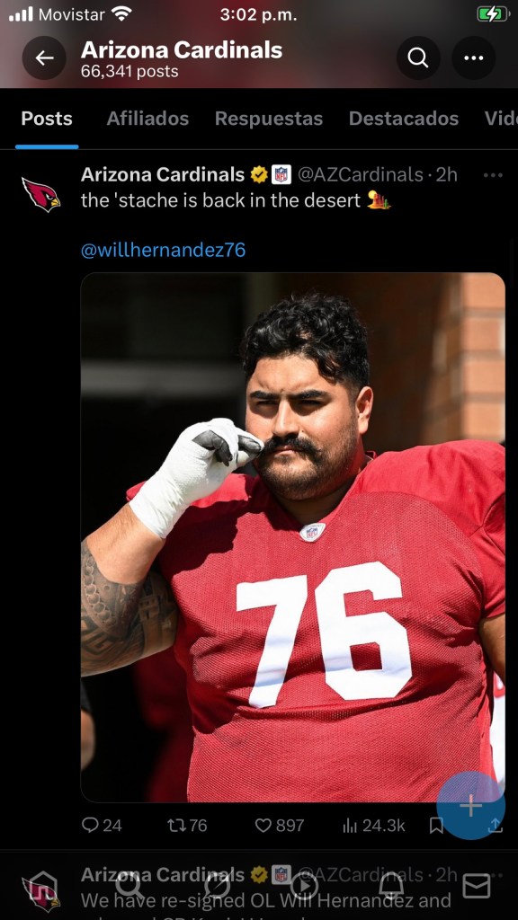 El mexicano Will Hernández, quien se recuperó de la rotura de ligamento cruzado anterior izquierdo que sufrió el año pasado, firmó este jueves con los Arizona Cardinals para jugar la campaña 2025 de la NFL.