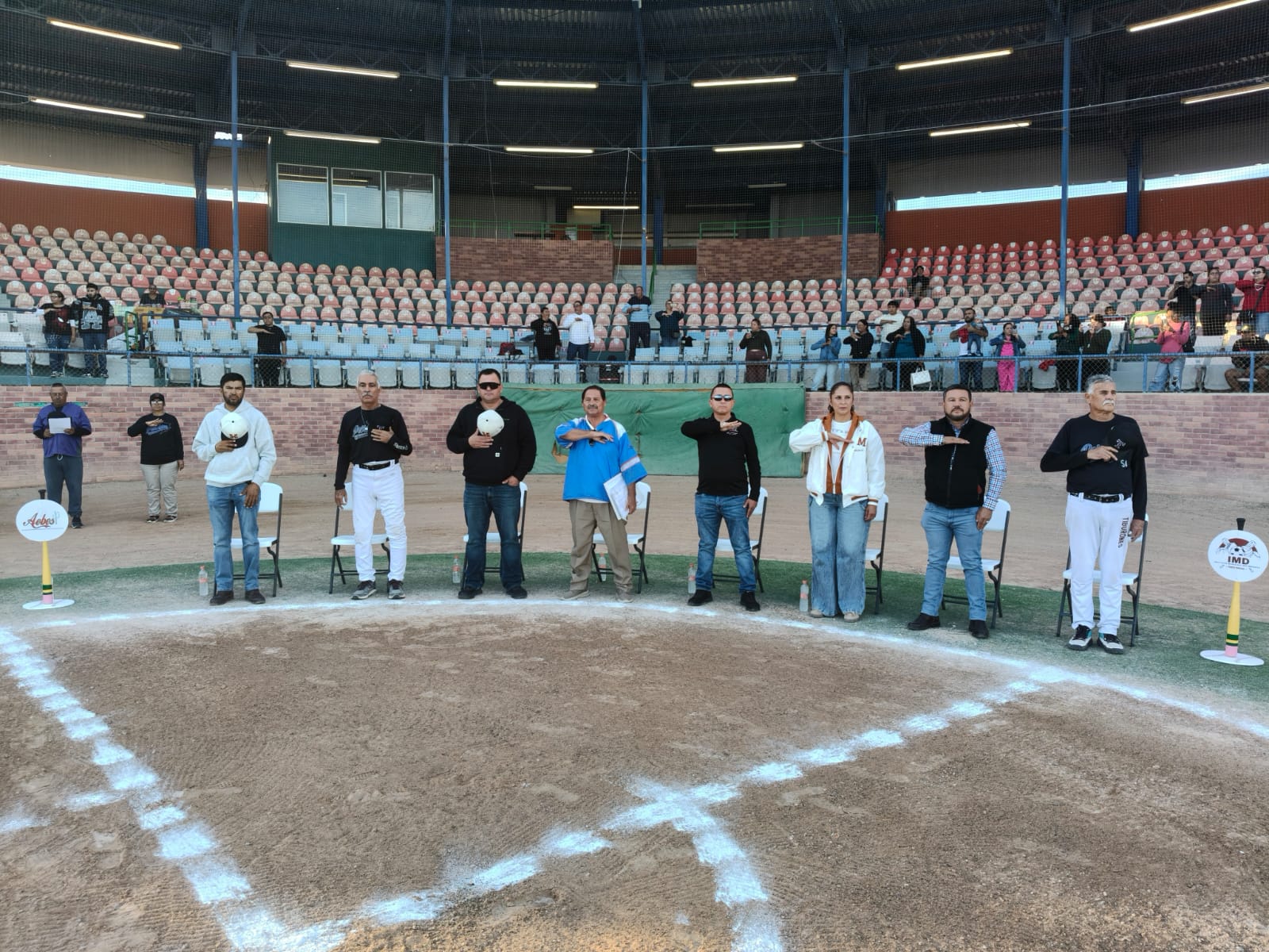 El primer lanzamiento lo hizo el mismo director del deporte, bateó la regidora Castillo, catcheo Iván Celaya delegado de Aebes y ampayo C