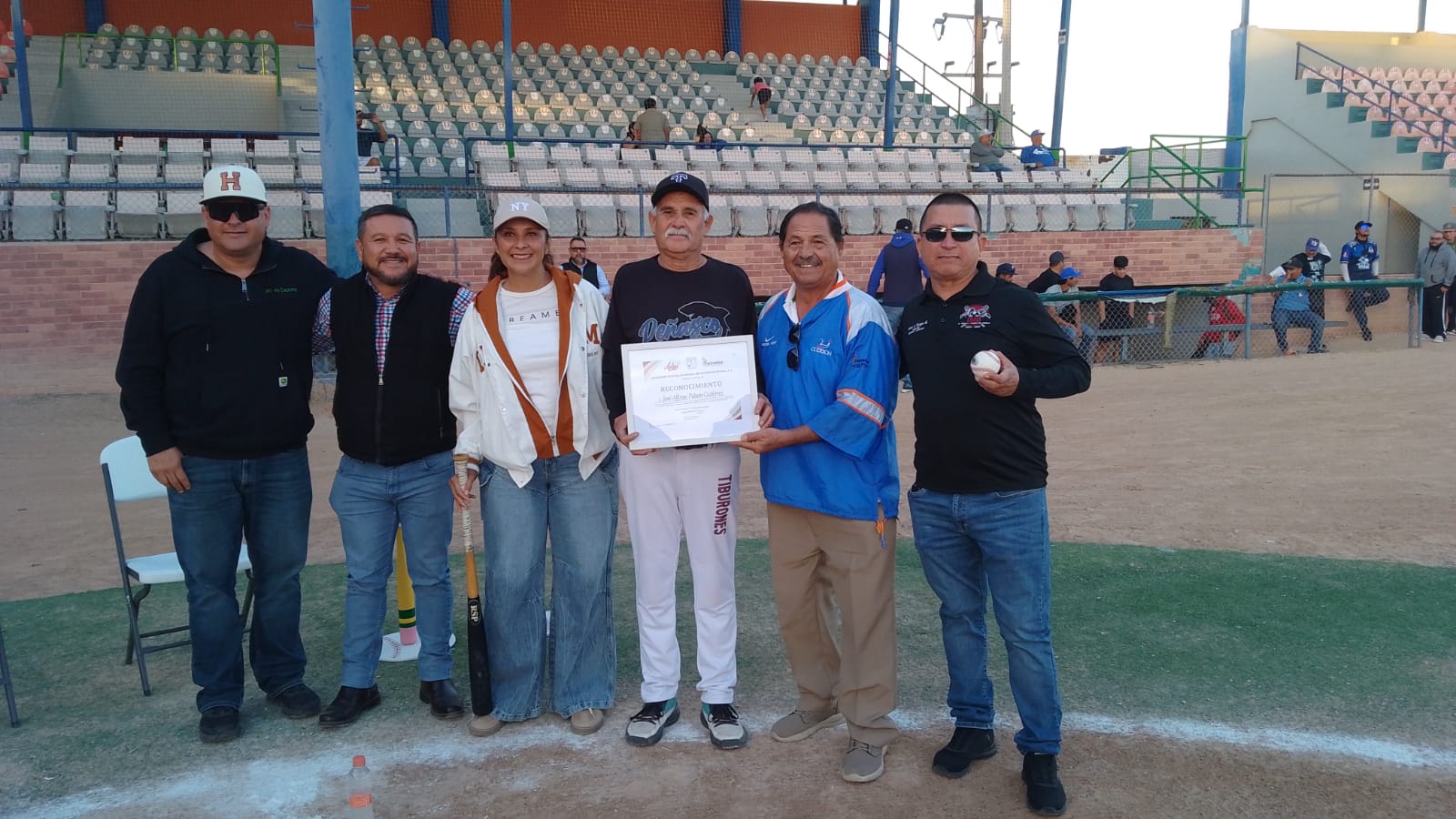 Así mismo subrayó que se debe de reconocer la trayectoria de personajes que se entregan al béisbol, y entregó un merecido Reconocimiento al Prof José Alfonso Palacio ( Tawa), por su incansable dedicación a la promoción del béisbol Sonorense, detalle que fue muy aplaudido por todos los presentes y público en general.