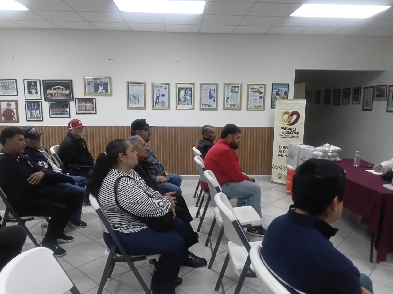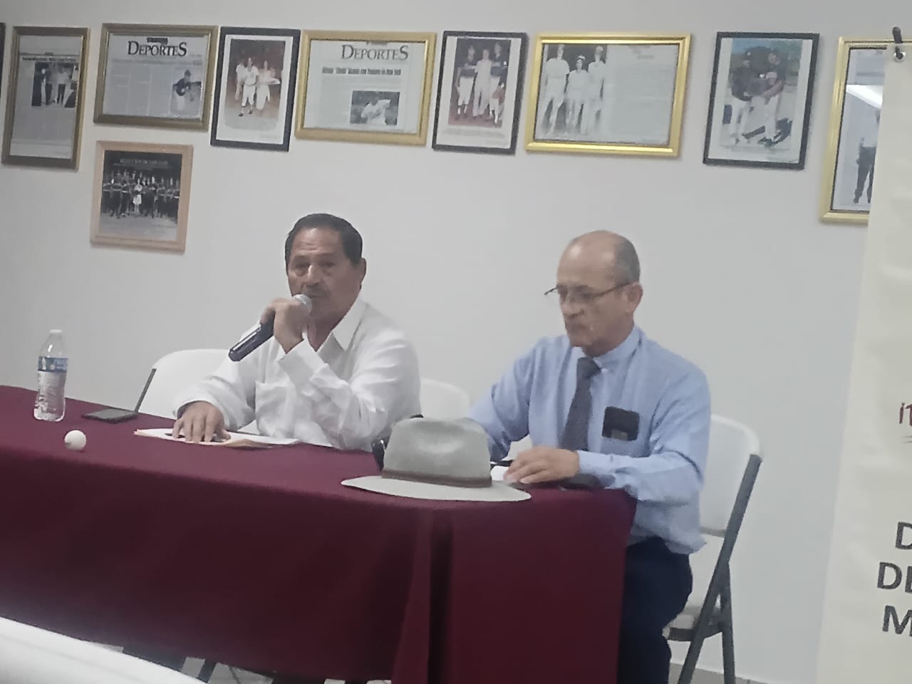 Cristóbal Vargas Rodríguez presidente de la Asociación Estatal de Beisbol del Estado de Sonora acompañado de Domingo Jesús Martínez en representación de la Directora del instituto del deporte de SLRC, Lic. Michelle González Robles, presidieron la Reunión Plenaria donde estuvieron presentes los líderes de las distintas categorías de béisbol San Luisino, así como el presidente del grupo de ampayers Edson Flores afiliados a la Aebes.
