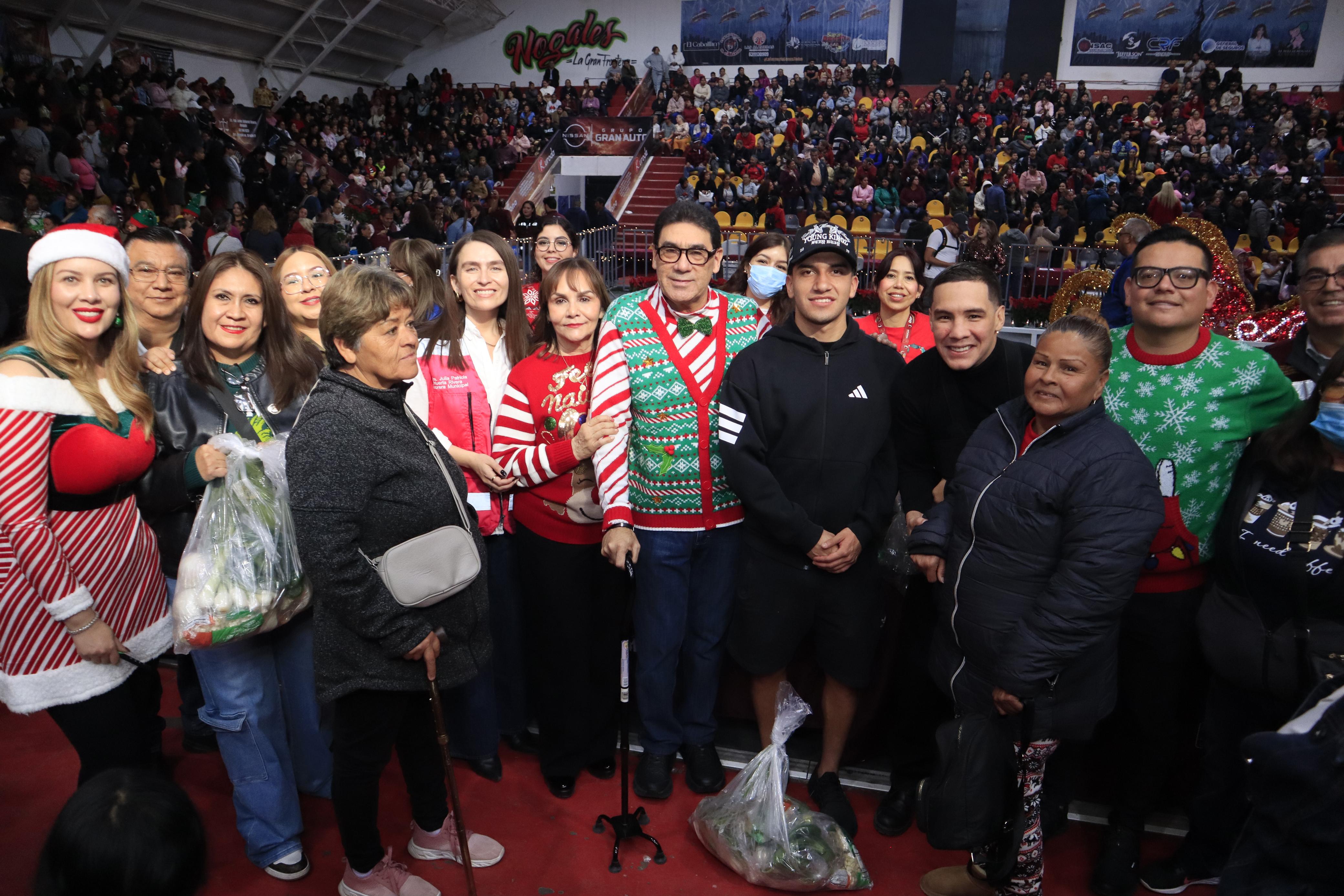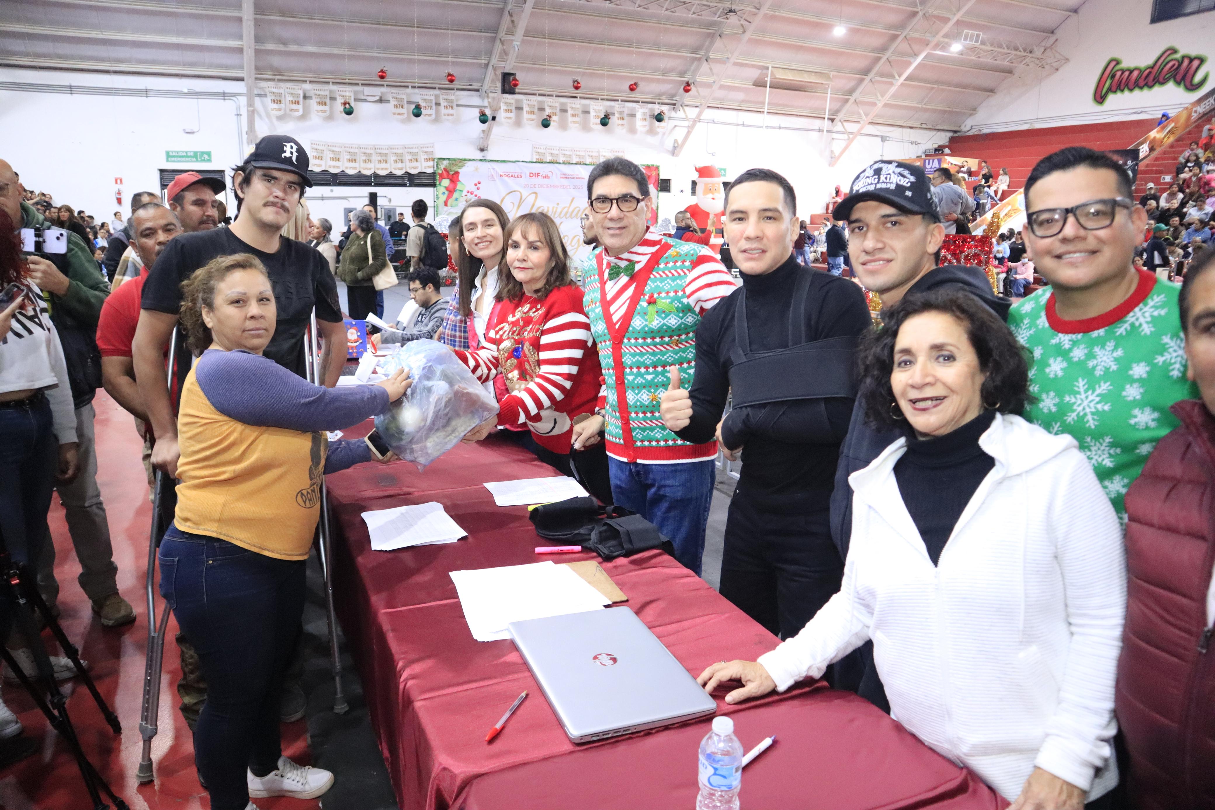 Como parte del protocolo, los beneficiarios participaron en la rifa de decenas de árboles de Nochebuena. Además, se contó con la presencia de dos deportistas de renombre: el boxeador Óscar Valdez Fierro y el futbolista profesional Alejandro Urías, quienes se sumaron al evento para desear felices fiestas a las familias asistentes.