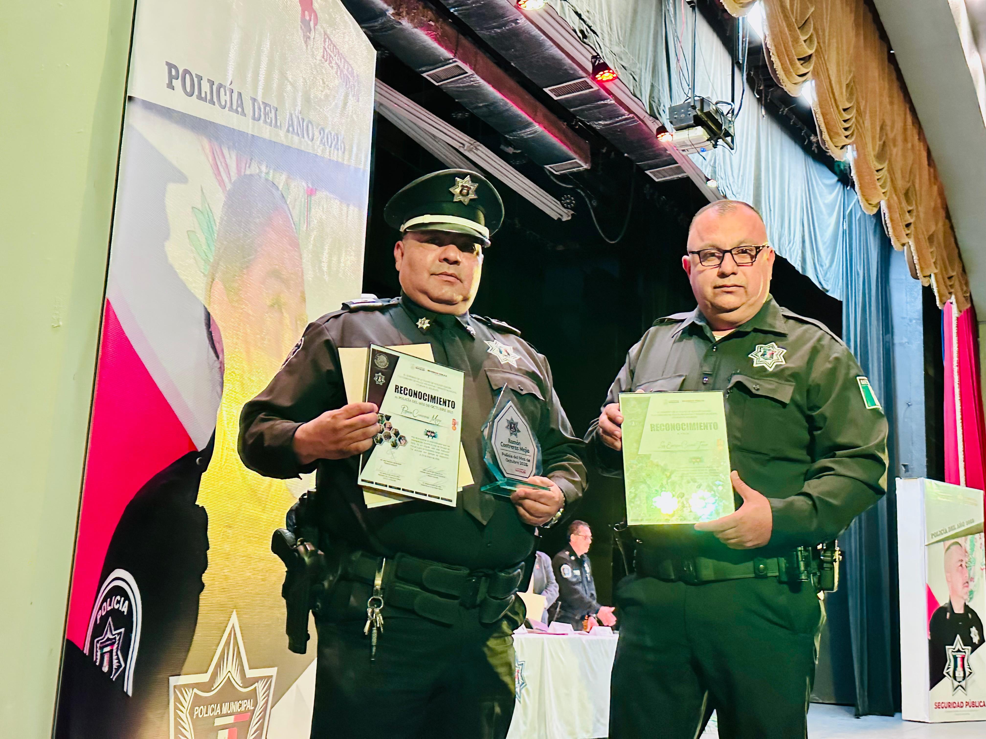 Se entregaron reconocimientos a Ramón Contreras Mexía, Policía del Mes de octubre; Michel Moreno Hernández, Policía del Mes de noviembre; y Enrique Alberto Leyva López, Policía del Mes de diciembre de 2025, quienes también fueron acreedores a incentivos económicos.