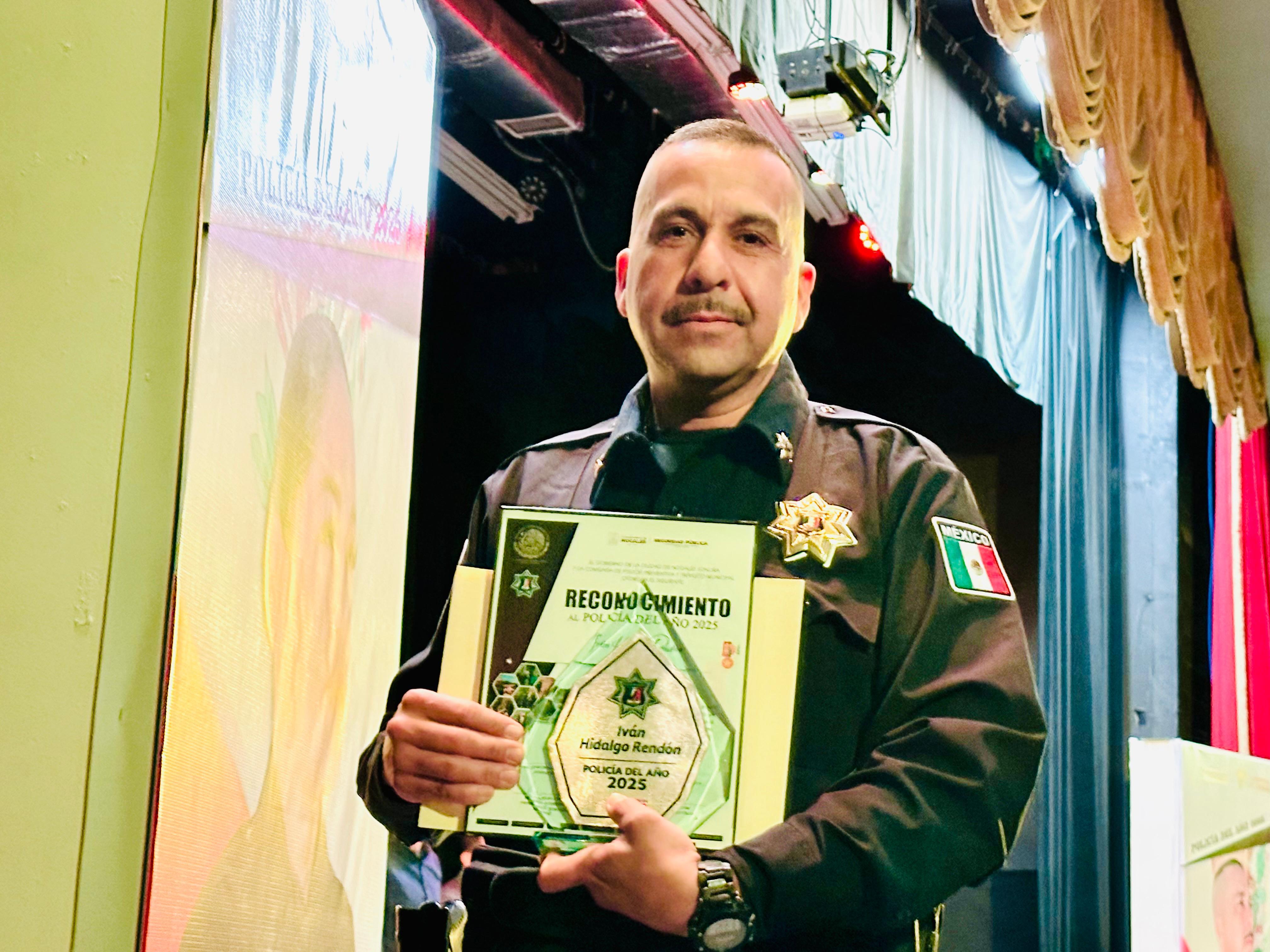 Por su destacada labor, profesionalismo y participación en acciones relevantes a favor de la seguridad, el oficial Iván Hidalgo Rendón fue reconocido como Policía del Año 2025, recibiendo una placa y un incentivo económico.
