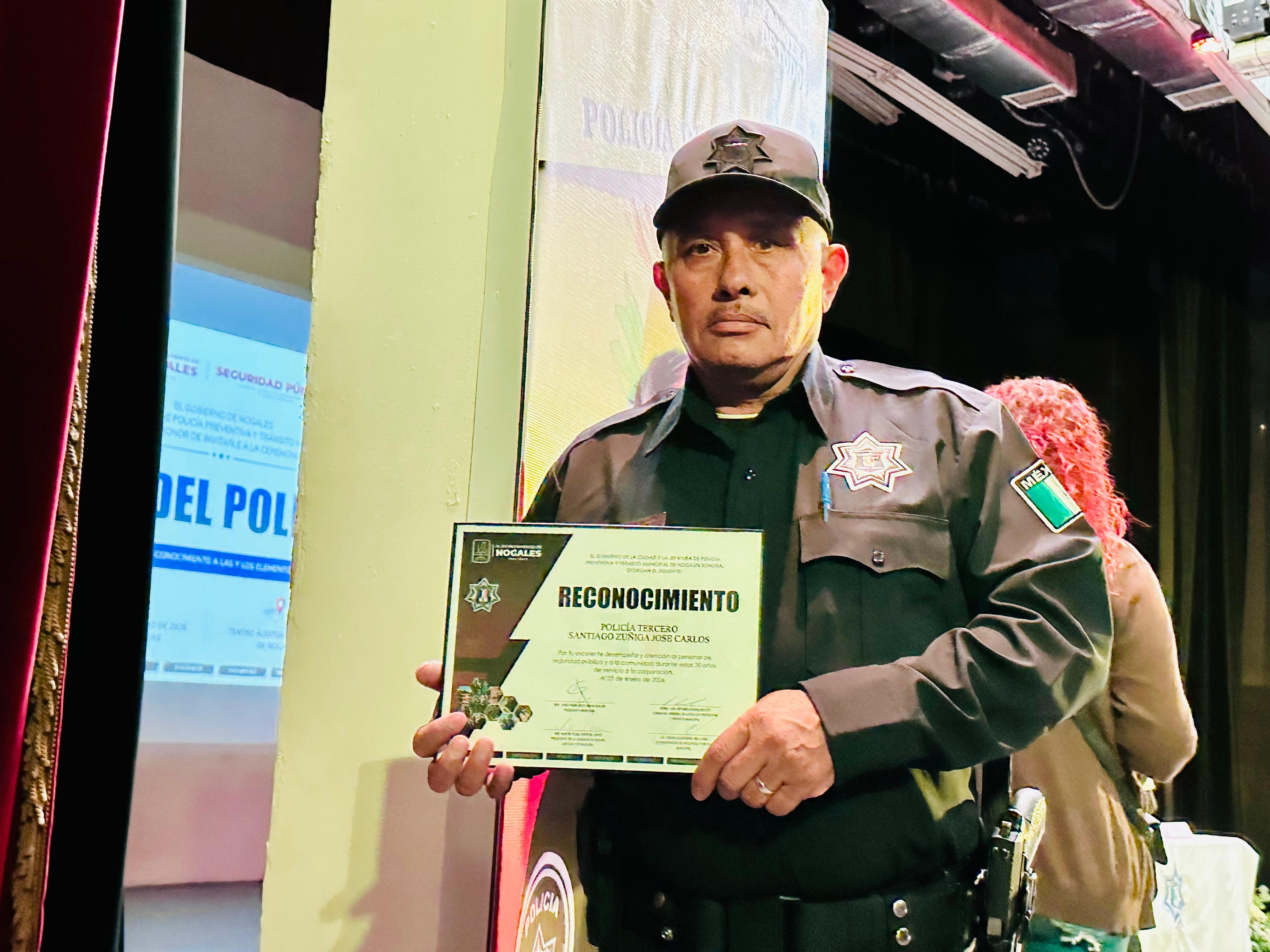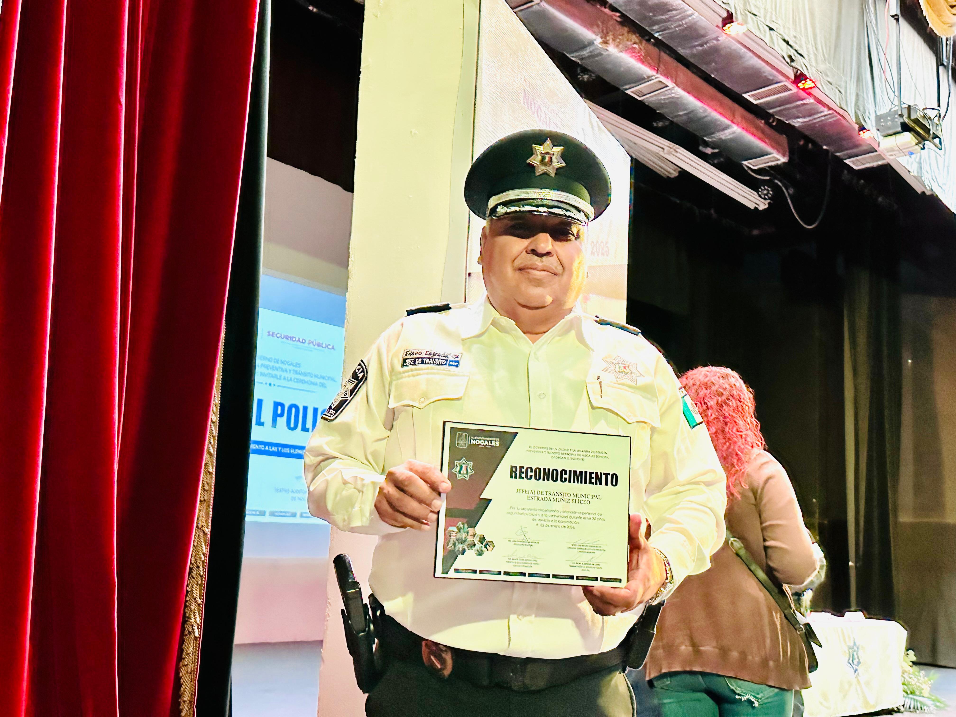 Con reconocimientos e incentivos económicos a elementos de la Comisaría de Seguridad Pública Municipal que cumplieron quince, veinte, 25, treinta y 35 años de servicio, así como a quienes destacaron por su desempeño durante el año 2025 este miércoles se conmemoró el Día del Policía.