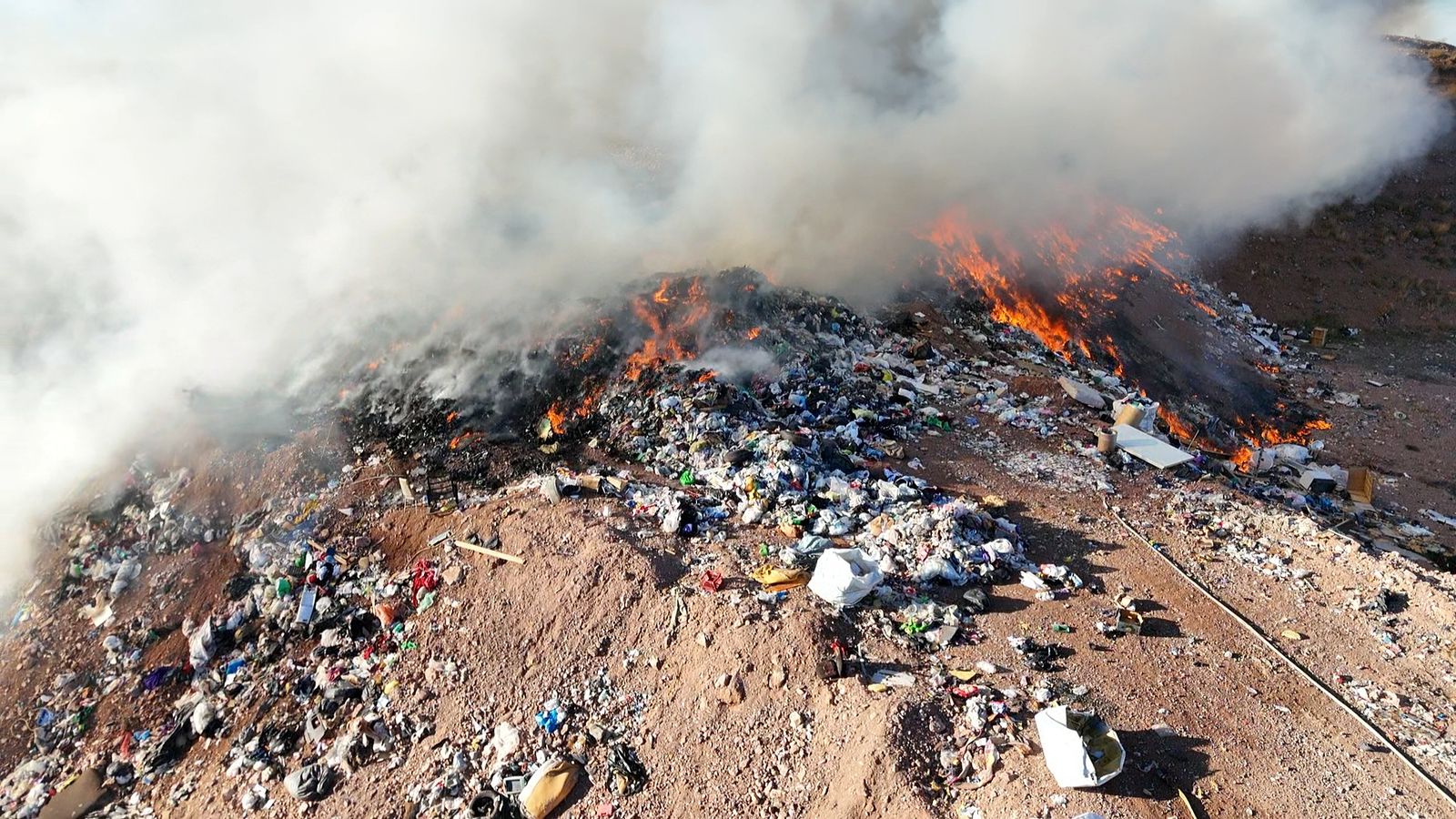 Luchan bomberos con incendio en Relleno Sanitario de Nogales
