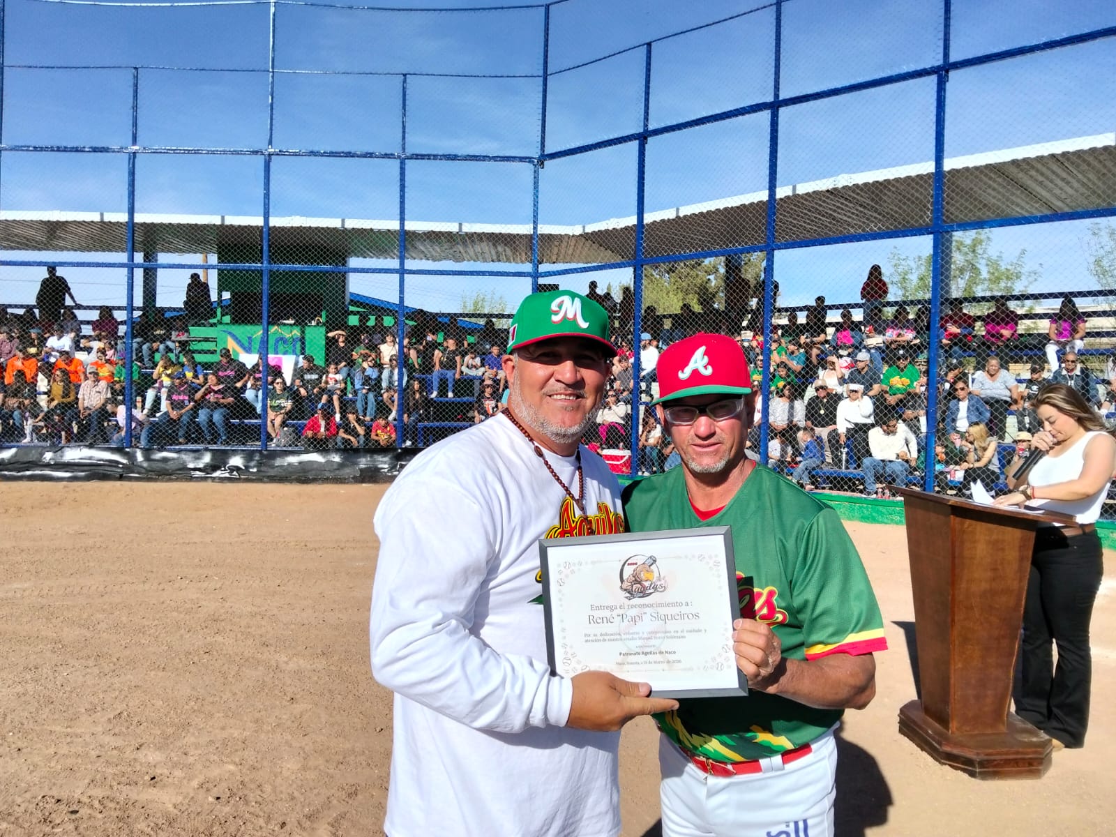 El patronato de béisbol de Naco entregó reconocimientos a figuras del béisbol de la ciudad, como René Márquez, Domingo Fernández, Manuel Lorenzo, Ismael Leyva, Profr Fernando Salazar, René Siqueiros, recibieron también reconocimientos Alberto Valdez y Manuel Vázquez por su destacada participación con Sonora en el Campeonato Nacional de primera fuerza, en un momento solemne el presidente municipal de Naco hizo entrega de un homenaje póstumo a familiares de Pedro Valdez y José Manuel Borbón.
