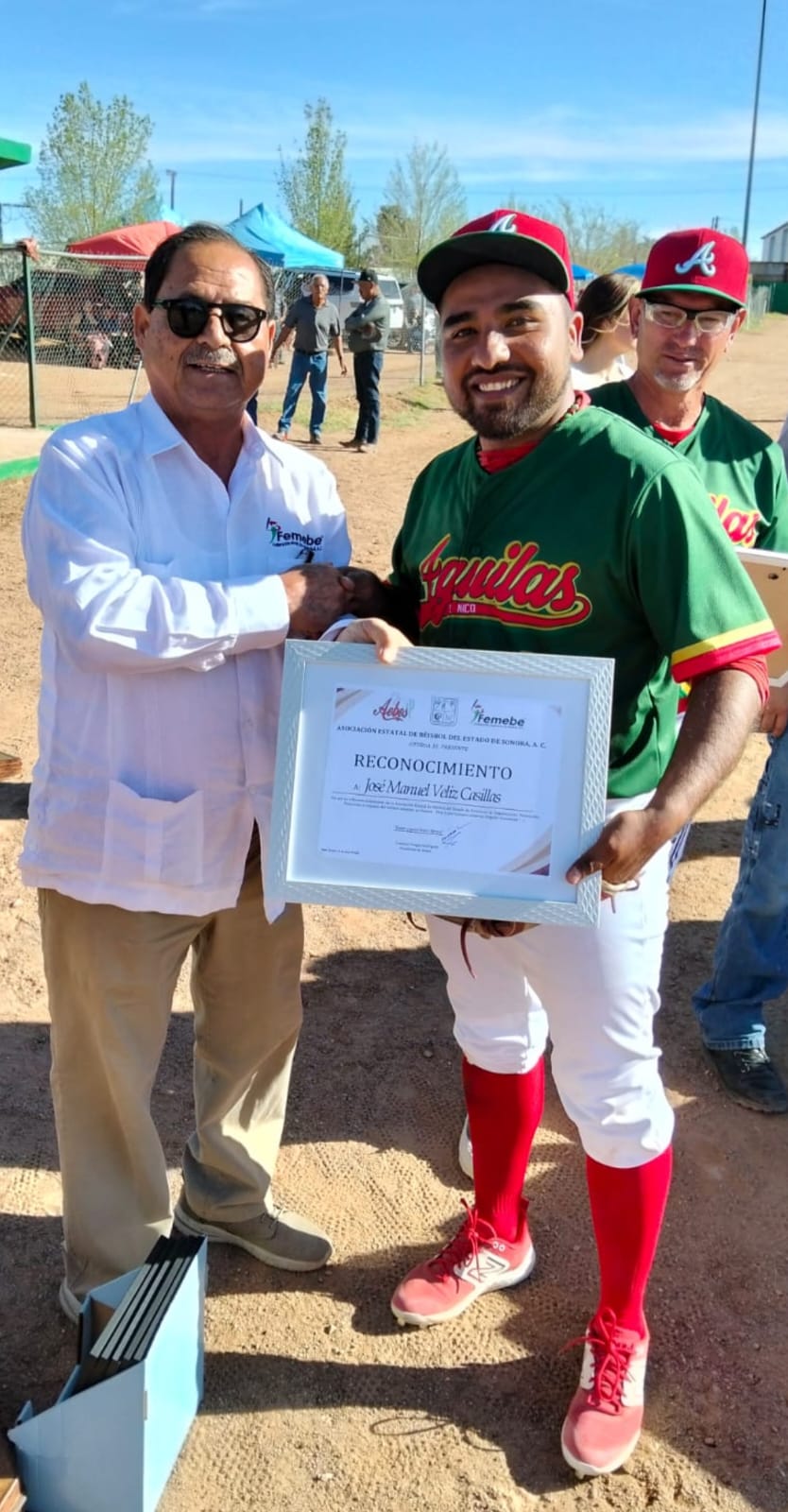 Por su parte Cristóbal Vargas Rodríguez presidente de Aebes, felicitó por la iniciativa de organizar este circuito beisbolero, donde participarán jugadores locales, destacando que es lo que hace falta para impulsar a esos Jugadores que dentro de poco serán las figuras a seguir, también entregó Reconocimientos especiales a José Manuel Véliz y Ramón Montaño por todo el Gran trabajo que han hecho por muchos años en beneficio del Béisbol amateur Sonorense.