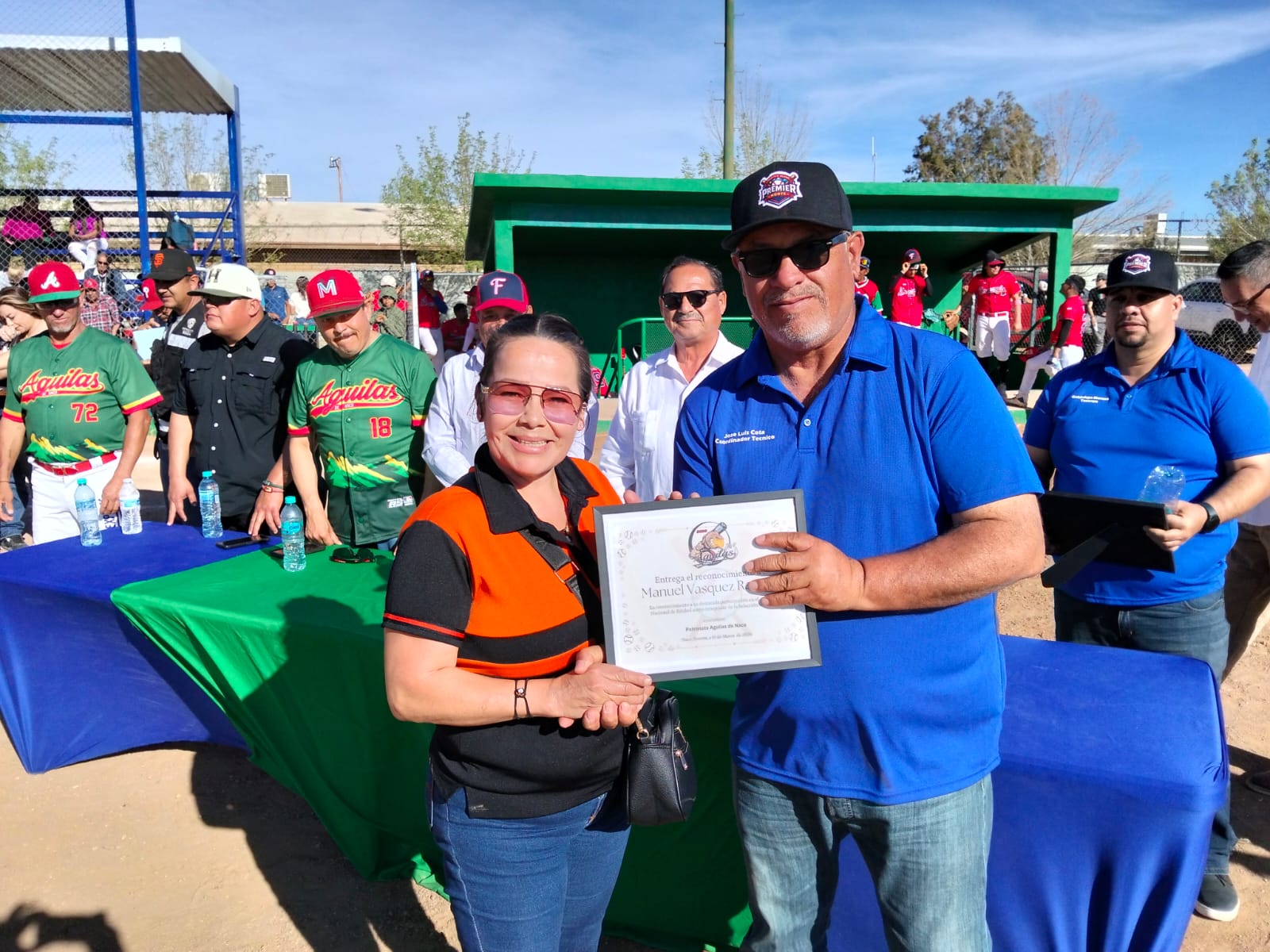 Con la presencia del presidente municipal de Naco anfitrión, Lorenzo Villegas, el presidente municipal de Fronteras Israel Quijada, Cristóbal Vargas Rodríguez presidente de la Asociación Estatal de Beisbol de Sonora, el Presidente de la liga Premier Norte, Octavio Moreno, el director del deporte municipal de Naco, José Manuel Véliz, el delegado de la Región 7 de Aebes, Ramón Montaño, Miembros del patronato del equipo Águilas de Naco y demás personalidades del ayuntamiento. Así como los dos equipos participantes, Bravos de Fronteras y Águilas de Naco.