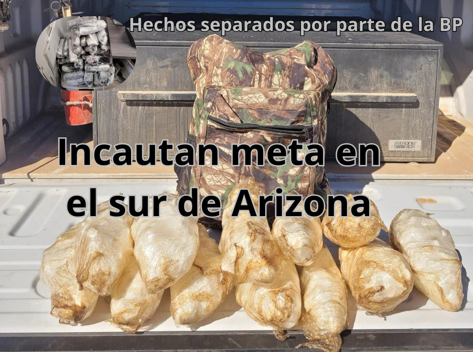 Más de sesenta kilogramos de metanfetaminas fueron incautados por parte de agentes de la Patrulla Fronteriza del Sector Tucson, así como la detención de un fugitivo en distintos hechos del 10 de marzo a la fecha.