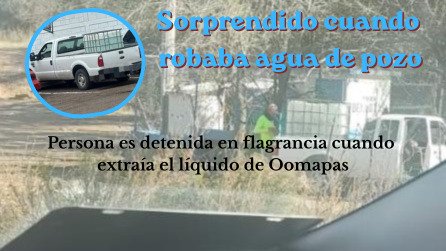 Una persona fue detenida en flagrancia cuando sustraía de manera ilegal agua del pozo Las Bellotas, propiedad de OomapasO, por lo que fue puesta a disposición de las autoridades correspondientes por su probable responsabilidad en los delitos de robo de agua, daños a la infraestructura y lo que resulte.
