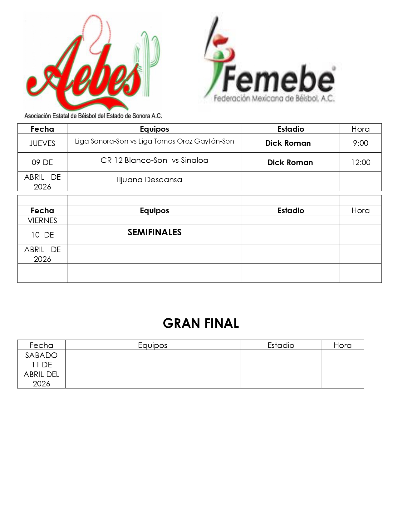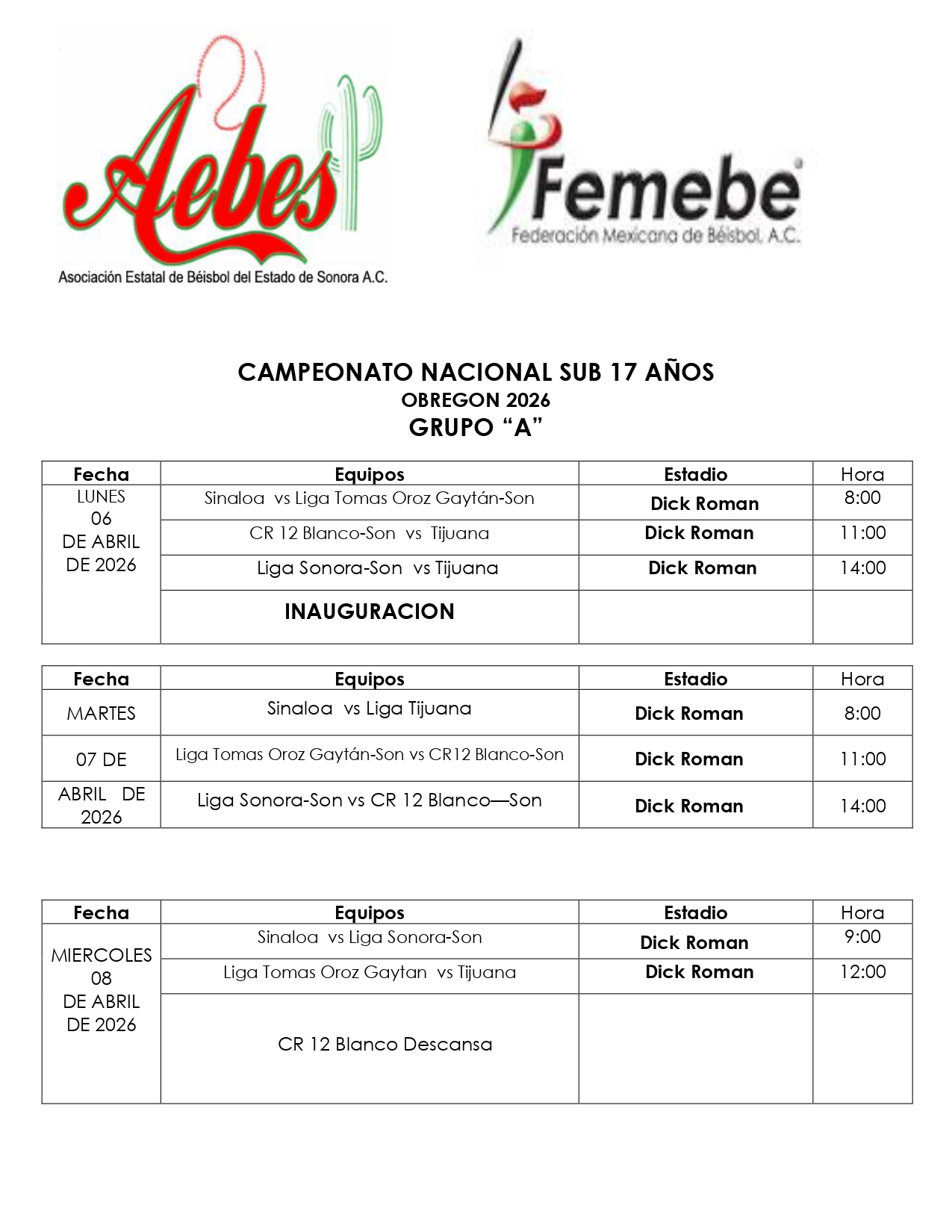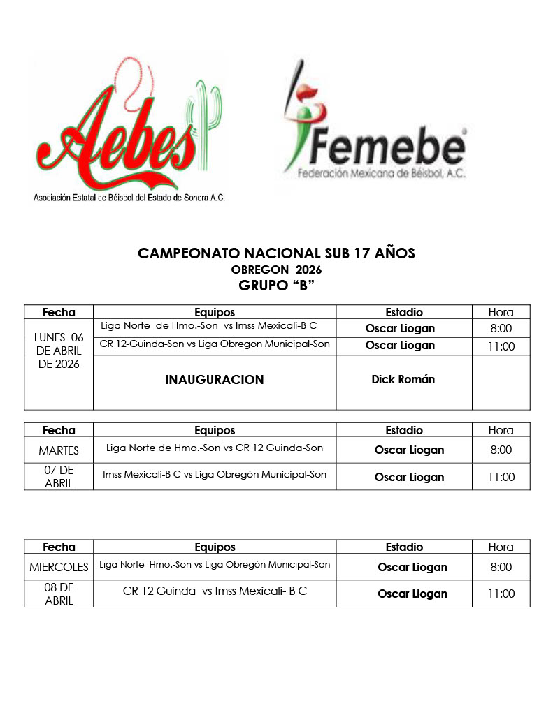 En tanto Enrique Jara tocó el tema de la inauguración informando que será en el Estadio Dick Román de la unidad deportiva Álvaro Obregón a las 9:30 horas con la presencia del presidente Municipal de Cajeme, Javier Lamarque Cano y demás autoridades deportivas.