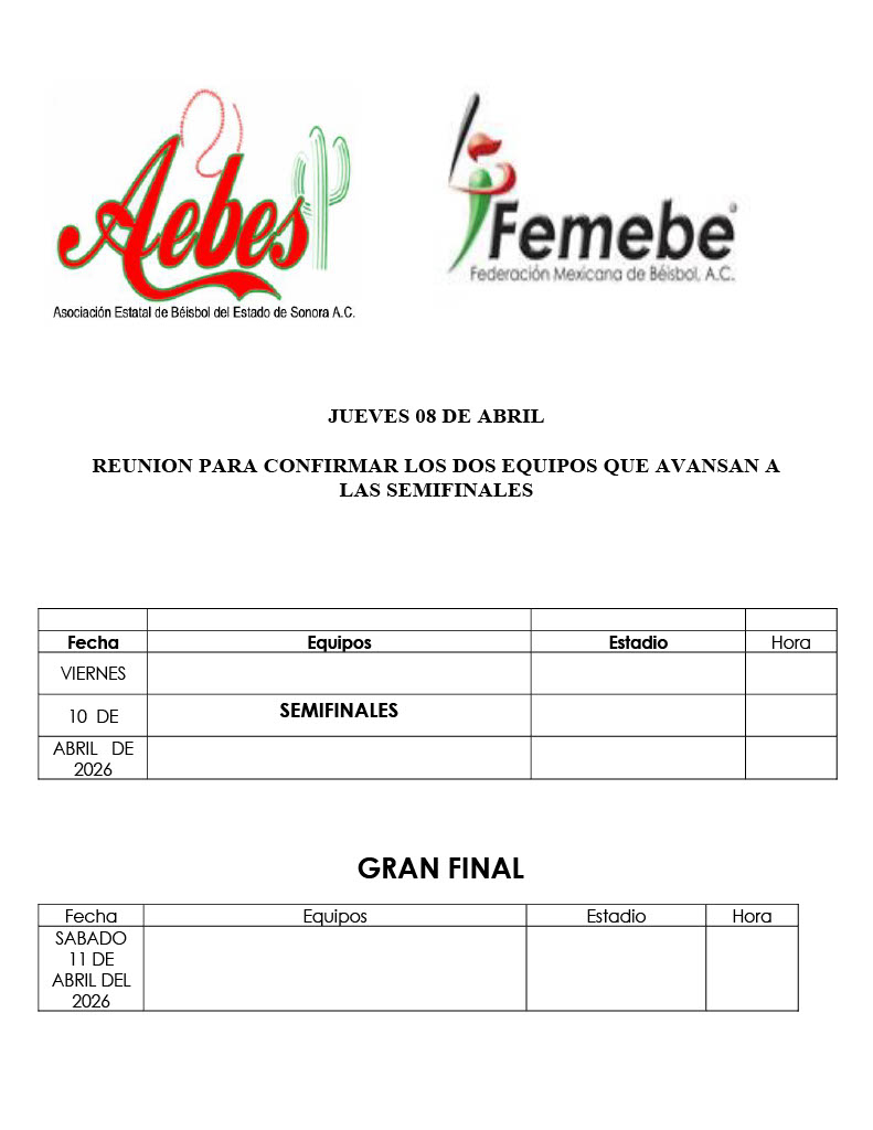 La Federación Mexicana de beisbol a través de Ángel Cruz Vázquez de la comisión Técnica nacional, presidió la reunión de trabajo, acompañado de Cristóbal Vargas Rodríguez presidente de la Asociación Estatal de Beisbol de Sonora (Aebes), Enrique Jara en representación del director general del instituto del deporte de Cajeme Rodrigo Minjarez, Julio Aldama miembro del comité organizador y del comité de honor y justicia del Campeonato, Sandra Lugo secretaria de Aebes y el delegado por Aebes Cajeme Ruiz.