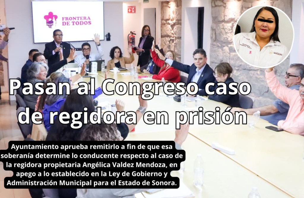 Por unanimidad, el pleno del Ayuntamiento aprobó remitir al Congreso del Estado la solicitud presentada, a fin de que esa soberanía determine lo conducente respecto al caso de la regidora propietaria Angélica Valdez Mendoza, en apego a lo establecido en la Ley de Gobierno y Administración Municipal para el Estado de Sonora.